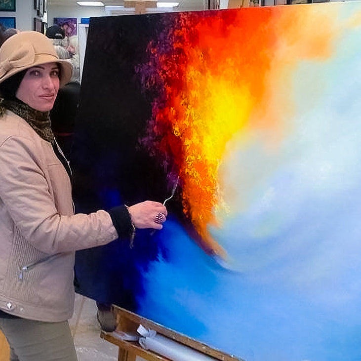 Sawsan’s evocative works blend rich cultural influences with contemporary techniques in an expressive style. Drawing inspiration from her Middle Eastern heritage and lived Canadian experience, Sawsan's work explores identity, connection, and nature through vibrant colors and dynamic compositions. Her work has been showcased in various galleries and art events across Canada, earning recognition for its emotional depth and unique narrative style. Sawsan's passion for storytelling through visual art invites viewers into a world where tradition and modernity coexist, creating a powerful and immersive experience.