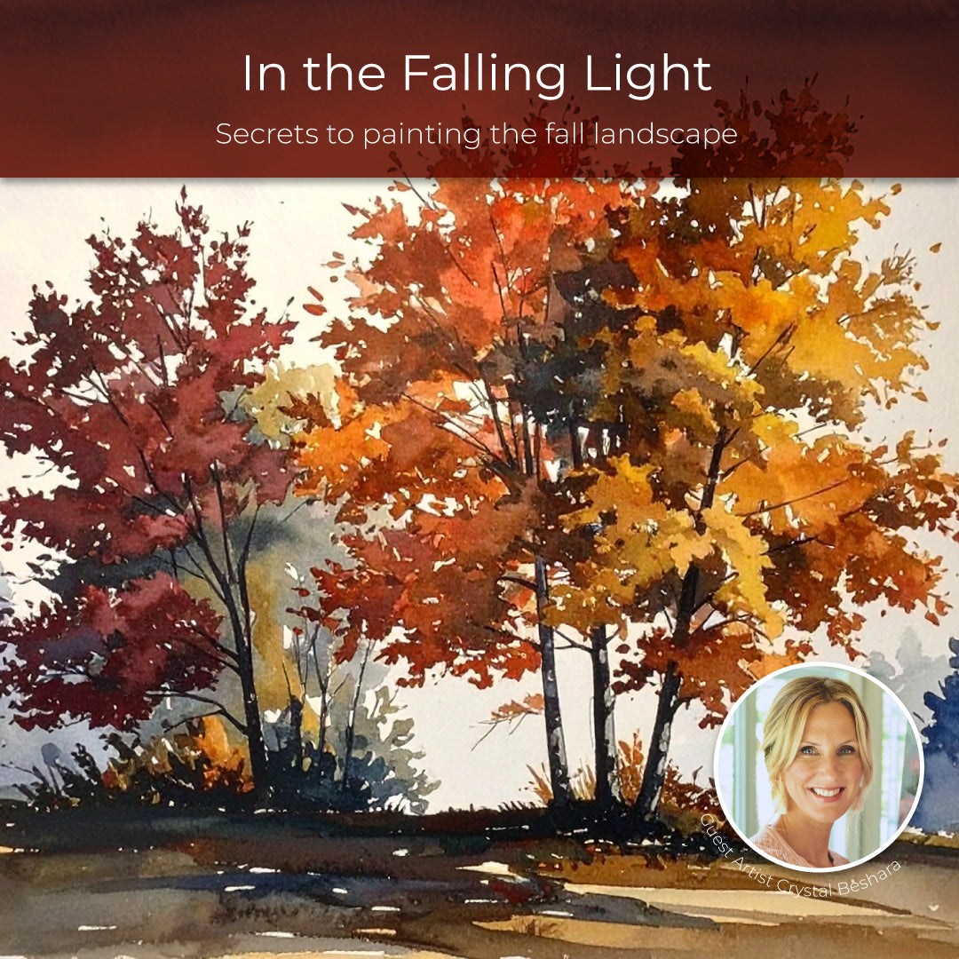 Catch the light with international art instructor Crystal Beshara and learn her trade secrets to painting impressionistic autumn foliage without turning your painting into mud. It's all about understanding how to build watercolour with just a dash of colour theory.